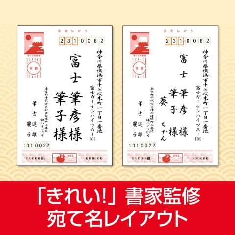 ■書家監修の綺麗な宛名レイアウト書家監修の綺麗なレイアウトに自動配置。住所録機能も分かりやすく簡単に入力できます。