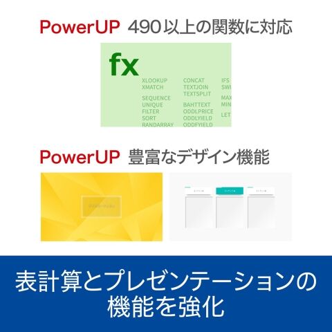 Excelとの高い互換性があり、490以上の関数に対応、ピボットテーブルやグラフ、スパークラインの作成もできます。