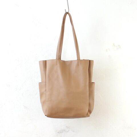 柔らかく滑らかな手触りのフェイクレザー素材を使用。肩に掛けても手持ちでも馴染みやすく、オンオフ問わず活躍!