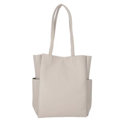 柔らかく滑らかな手触りのフェイクレザー素材を使用。肩に掛けても手持ちでも馴染みやすく、オンオフ問わず活躍!