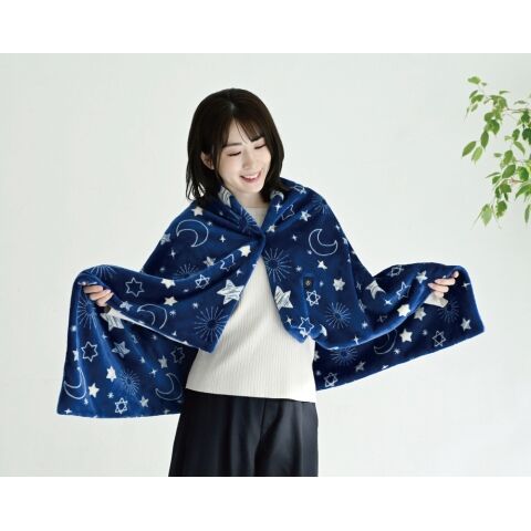 お部屋づかいにもちょっとした外出にも使えるカジュアルなデザインの電気着る毛布です。
