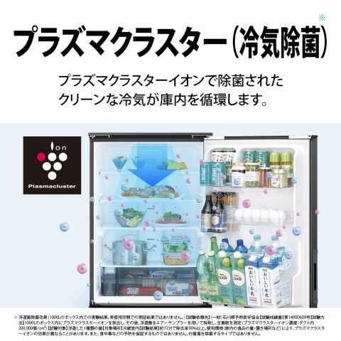 プラズマクラスターイオンで除菌されたクリーンな冷気が庫内を循環します。