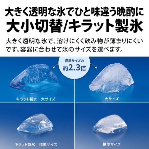 容器に合わせて氷のサイズを選べます。