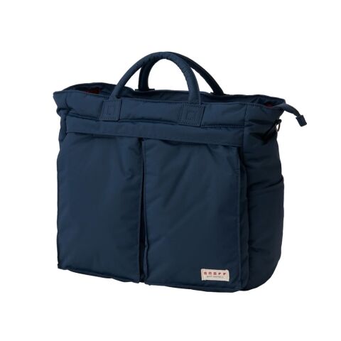 ◆軽量で耐久性に優れたナイロンツイル素材に綿をボンディングし、カジュアルで柔らかな風合いが特長のトートバッグ。