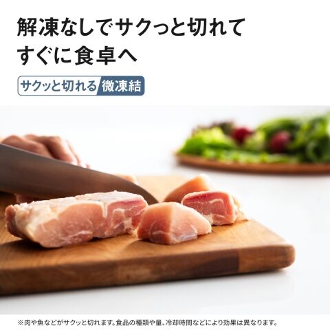 肉や魚が凍り始めるギリギリの約-3℃でおいしく保存。肉は食材別に約14日間あるいは約10日間、魚は約7日間、新鮮に保存できます。