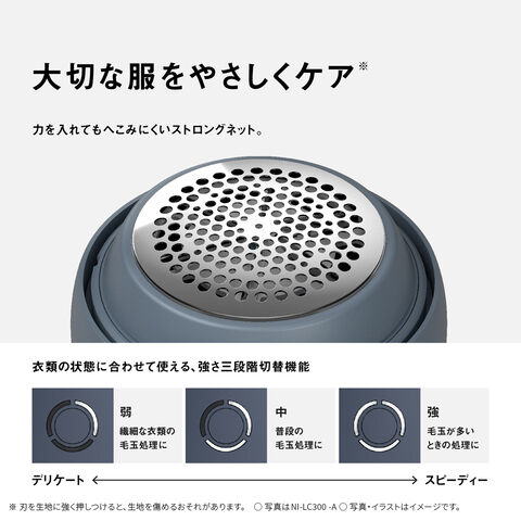 毛玉の程度や素材に合わせて強さを切り替え。