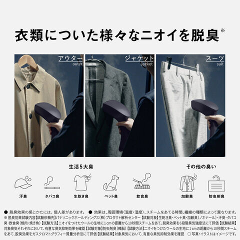 ※効果は、周囲環境(温度・湿度)、スチームをあてる時間、繊維の種類によって異なります。