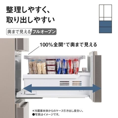 ※冷蔵庫本体からのケース引き出し度合い