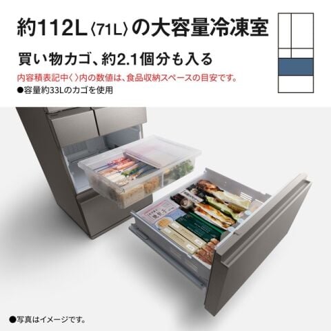 ※内容積表記中< >内の数値は、食品収納スペースの目安です。