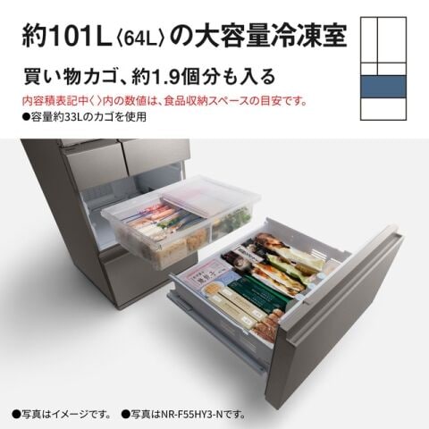 ◆約101L<64L>の大容量冷凍室