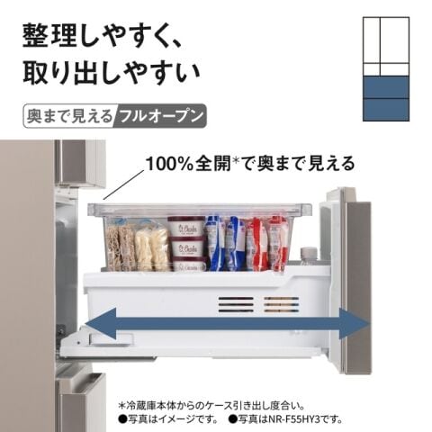※冷蔵庫本体からのケース引き出し度合い