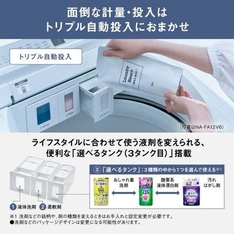 「選べるタンク」:3種類(おしゃれ着洗剤/酸素系液体漂白剤/汚れはがし剤)の中から1つを選んで使える
