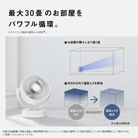 ※風の到達距離と空間の温度ムラ解消時間を用いたパナソニック独自の基準により目安を設定しています。使用環境によって異なります。