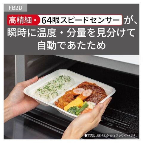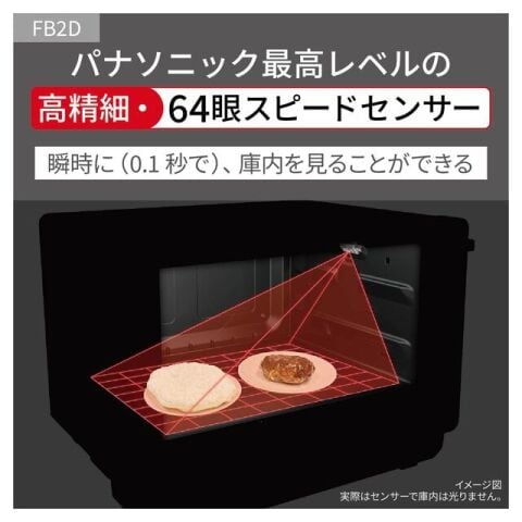 高精細・64眼スピードセンサーは、0.1秒毎に64カ所の食品の温度を見極め、パナソニック独自の3Dアンテナでマイクロ波をコントロールしながら冷たい所を狙ってムラを押さえて加熱します。