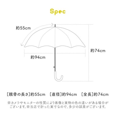 [透明部分]ポリエチレン100% - サイズ:[親骨の長さ]約55cm/[直径]約94cm/[全長]約74cm