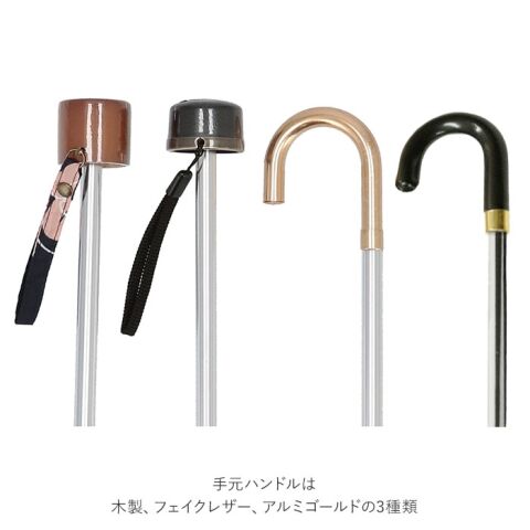 ◆手元ハンドルは、傘を持つ指先をたおやかに演出する華奢なデザインのアルミゴールド、ナチュラルな木製、フェイクレザータイプの3種類。