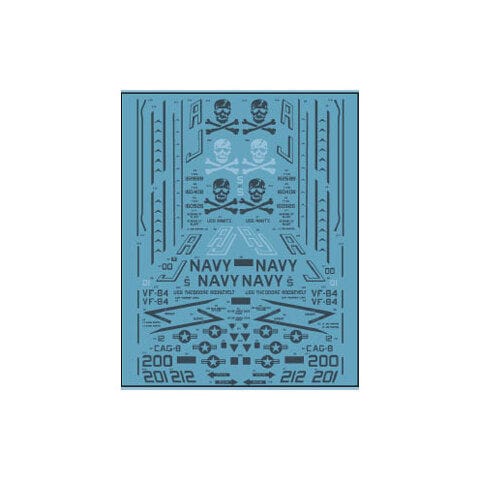 1990年代に運用されていた、ロービジ塗装のアメリカ海軍VF-84"ジョリーロジャース"所属のF-14トムキャットを再現するための1/48スケール水転写式デカールです。