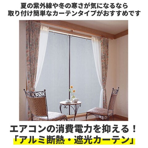 ◆エアコンの消費電力を抑える! アルミ断熱・遮光カーテン(2枚組)。