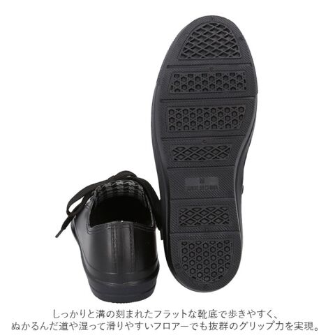 ◆しっかりと溝の刻まれたフラットな靴底で歩きやすく、ぬかるんだ道や湿って滑りやすいフロアーでも抜群のグリップ力を実現。