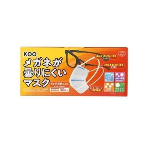 クー・メディカル KOOメガネが曇りにくいマスク やや小さめサイズ個包装30枚 メガネガクモリニクイヤヤチイサメ 【返品種別A】