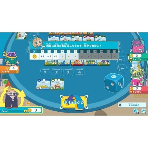 サイコロを振り、出た目と一致する「施設」の効果が発動すると、コインなどの報酬を獲得できます。