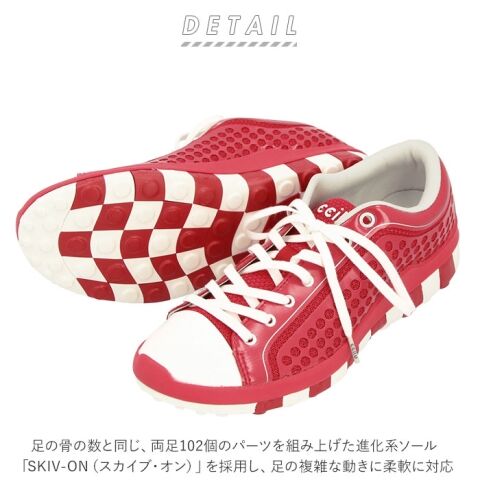 足の骨の数と同じ、両足102個のパーツを組み上げた進化系ソール「SKIV-ON(スカイブ・オン)」を採用し、足の複雑な動きに柔軟に対応。