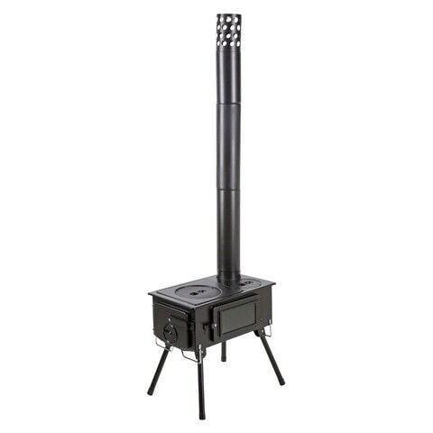 アウトドアシーンに合わせた角型のかまど煙突ストーブ