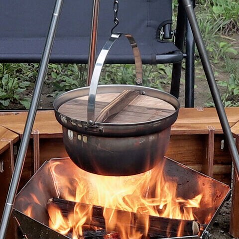 ◆焚き火で使いやすいステンレス製ツル付き鍋