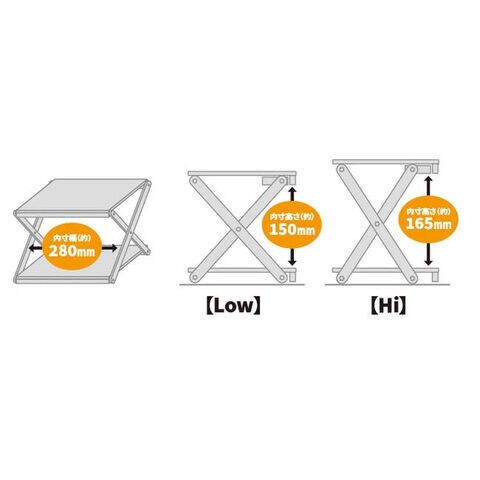 - 本体サイズ(約):幅330×奥行175×高さLow195・High210mm