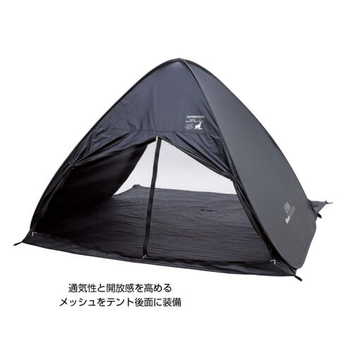 ◆テントは前後面から出入りができ、後面には通気性と開放感のあるメッシュパネルを装備し、閉じる事もできます。