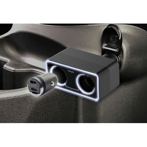 ◆DC12V/24V兼用2ポートカーソケット+専用Type-C/Type-C コンパクトUSB充電器つき