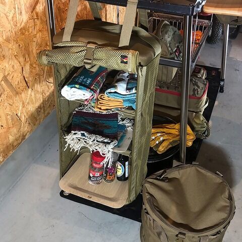 吊して収納する縦型収納棚、キャンプシェルフです。