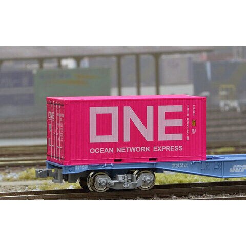 朗堂Nゲージ用コンテナ、20fドライコンテナタイプ ONE(ピンク)(3個入り)です。