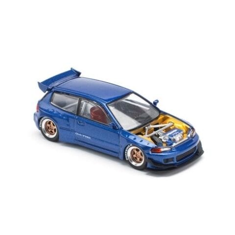 POP RACE 1/64 PANDEM CIVIC EG6 METALLIC BLUE WITH OPEN HOOD です。