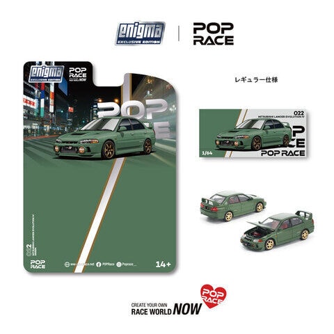 POP RACE × Enigmaより、「1/64 三菱ランサー エボリューションIV グリーン」が登場。