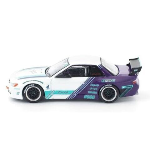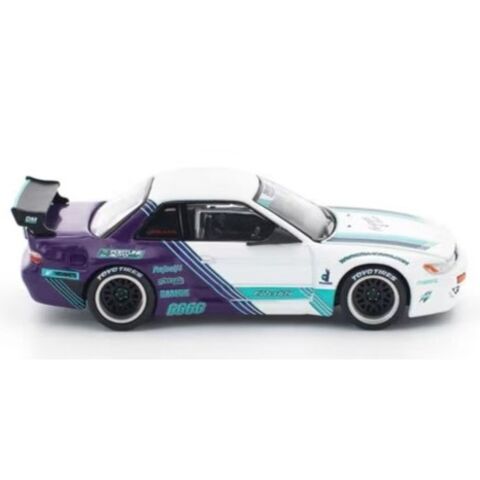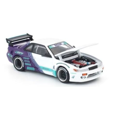 ドリフトシーンで人気の高いPANDEM S13を、ホワイト×パープルの個性的なカラーリングで1/64スケール化。