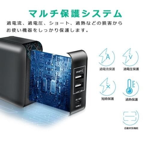 ◆スマートICチップ内蔵、どのポートに接続しても機器を自動で判別して最適な電力で最短で充電可能