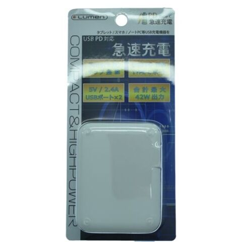 ルーメン 最大PD42W出力&QC3規格対応 USB充電アダプタ 3ポート USB-A (2.4A/max) x 2ポート + Type-C (PD30W) x 1ポート(ホワイト) LAC-RA2CPD-WH 【返品種別A】