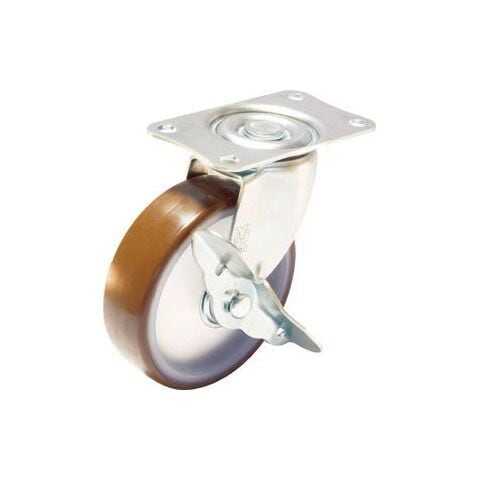 ユーエイキャスター キャスターS付自在車 ウレタン車輪径100 プレート式キャスター(ナイロンホイールウレタン車) SG-100URS 【返品種別B】