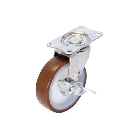 ユーエイキャスター キャスターS付自在車 径75ウレタン車輪 プレート式キャスター(ナイロンホイールウレタン車) E-75URS 【返品種別B】