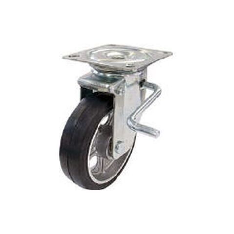 ユーエイキャスター 産業用キャスター自在車ストッパー付 150径アルミホイルゴム車輪 プレート式キャスター(アルミホイールゴム車) PMS-150AWLB(R) 【返品種別B】