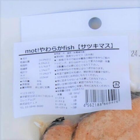 ■保証成分:粗蛋白質24.0%以上、粗脂肪6.5%以上、粗繊維0.5%以下、粗灰分1.5%以下、水分77.0%以下