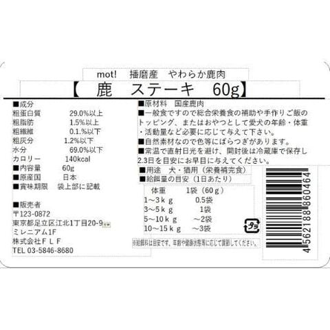 FLF mot! やわらか鹿肉 鹿ステーキ 60g Mヤワラカシカニクシカステ-キ60G 【返品種別B】