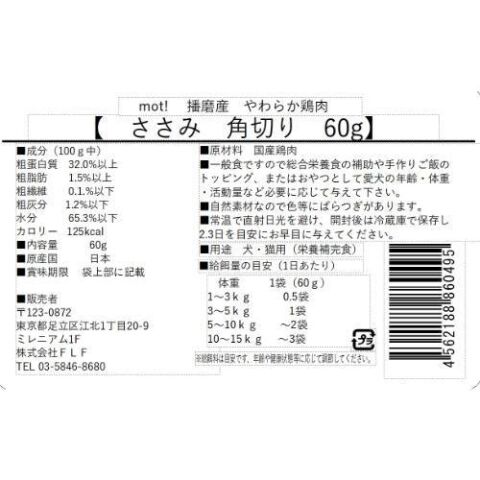 FLF mot!  やわらか鶏肉 ささみ角切り 60g Mヤワラカトリニクササミカクギリ60G 【返品種別B】