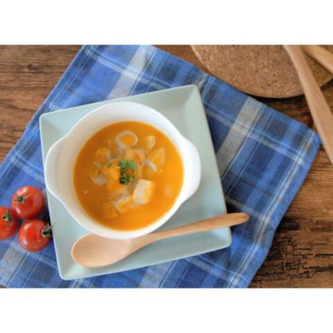 ◆栄養たっぷりの国産鶏むね肉と播磨産のかぼちゃを口当たりのやさしいポタージュスープに。
