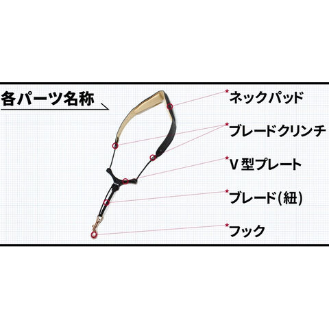 V型プレートが首元の圧迫をふせぐ多機能ストラップ