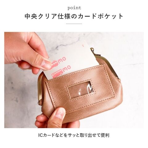 ◆前面にカードポケットを配置。背面には中央クリア仕様のカードポケットがあり、ICカードなどをサッと取り出せて便利。
