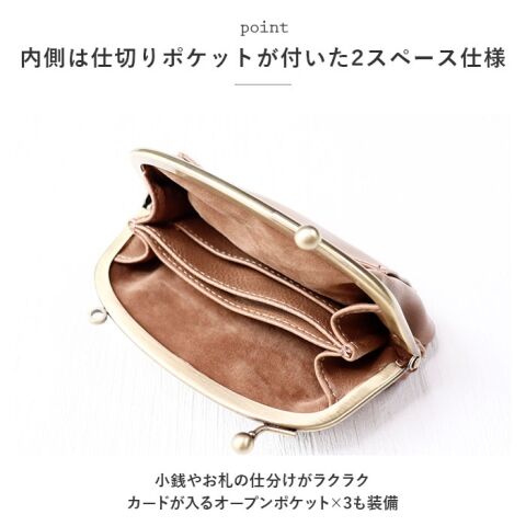 ◆内側は仕切りポケットが付いた2スペース仕様で、小銭やお札の仕分けがラクラク。カードが入るオープンポケット×3も装備。
