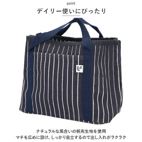 - サイズ(約):縦18.5cm×横(底部)23cm×マチ10cm 持ち手26cm