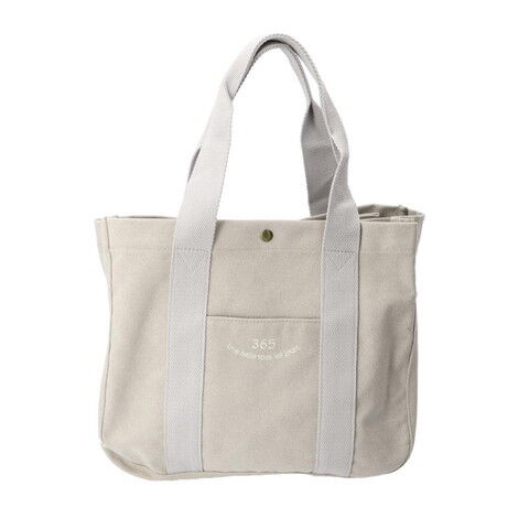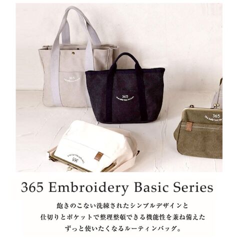 ◆日常に馴染むシンプルさ。ナチュラルな風合いのコットンキャンバス素材に365の刺繍入り。